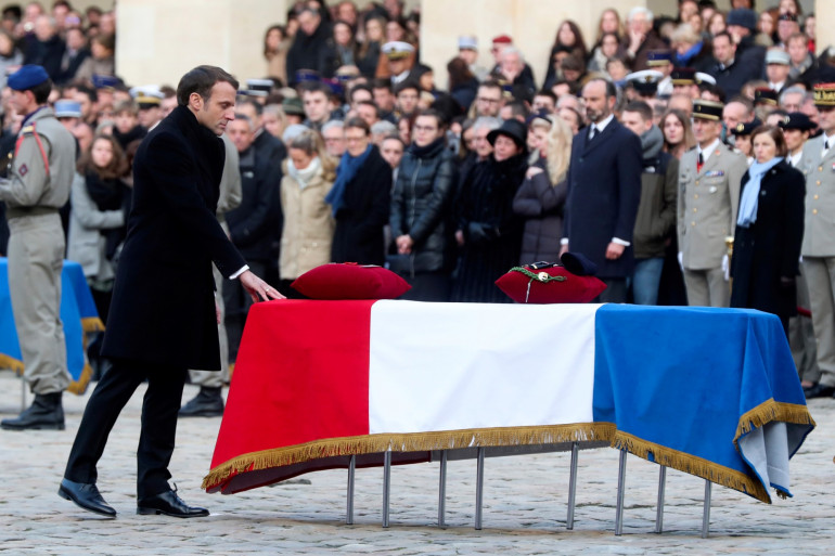 Le président Macron a prononcé un éloge funèbre devant les 2.500 personnes présentes dans la cour d'honneur des Invalides. "La liberté a souvent le goût du sang versé", a déclaré le président de la République. "Au nom de la Nation, je m'incline devant leur sacrifice", a-t-il ajouté avant de remettre la Légion d'honneur, à titre posthume, à chacun de ces 13 soldats "morts pour la France".
