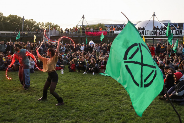 Des militants "Extinction Rebellion", le 6 octobre 2019 au parc de la Villette à Paris.