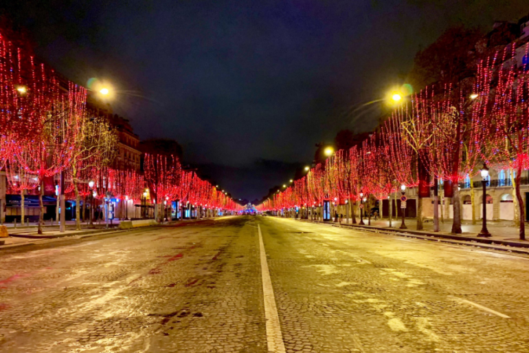 Les Champs-Élysées, à Paris, vides en début de soirée après l'"acte 4" de la mobilisation des "gilets jaunes" samedi 8 décembre 2018