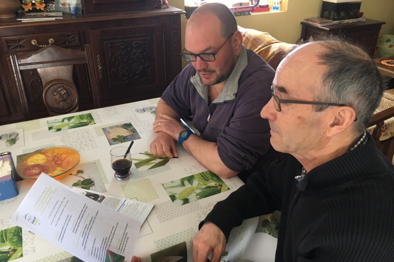 Nicolas Bigot et Jean-Claude Lebrun bénévole de l'association Solidarité Paysans.
