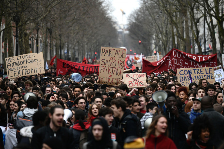 Des étudiants manifestent dans les rues de Paris le 22 mars