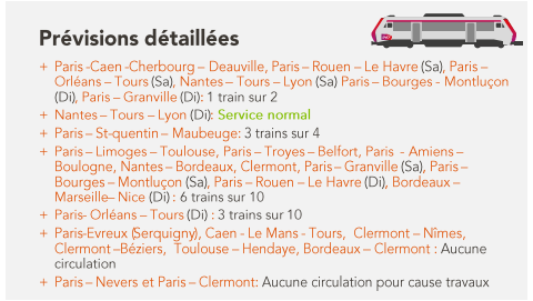 Les prévisions Intercités pour le samedi 10 juin