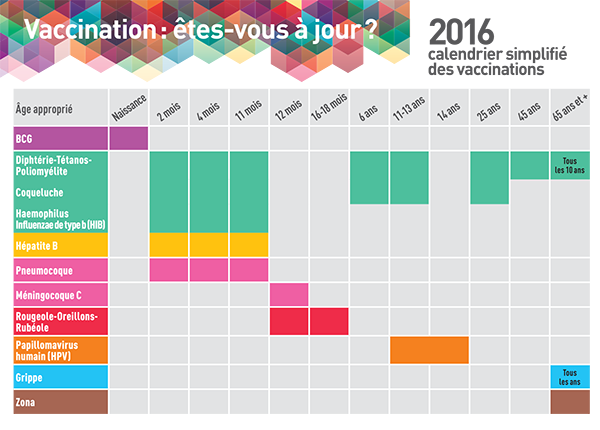 Enfin, le trio Rougeole-Oreillons-Rubéole très actif en hiver fait l'objet d'un vaccin unique à inoculer en deux doses aux enfants de 12 à 18 mois. Pour les patients qui auraient peur de ne pas être à jour, ou pour les jeunes parents qui ne sauraient pas quand faire vacciner leurs enfants, le gouvernement a publié un calendrier détaillé sur le site Vaccination Info Service.