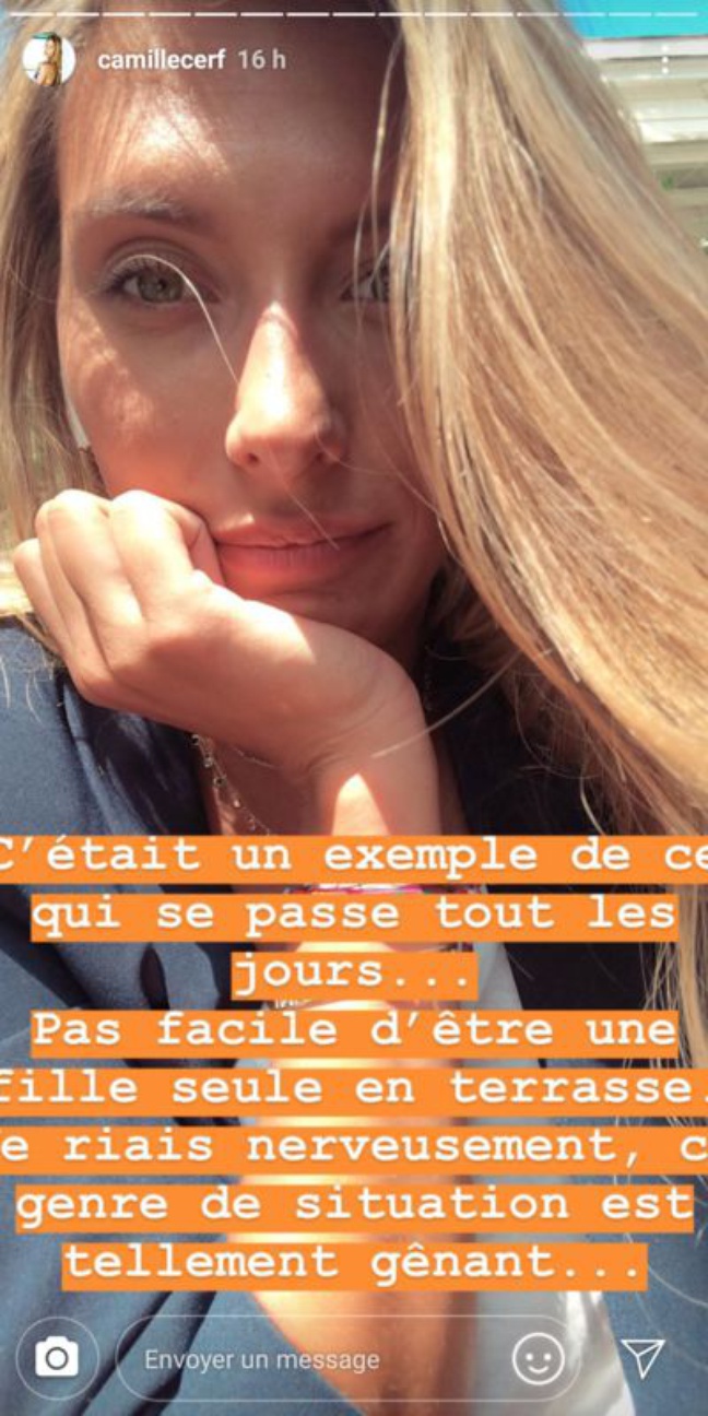 "C'était un exemple de ce qui se passe tous les jours". Être une femme à la terrasse d'un café ne semble pas toujours rimer avec moment de quiétude. Camille Cerf, Miss France 2015, a publié sur sa story Instagram une vidéo montrant un exemple de ce qu'elle explique devoir subir très souvent, à savoir la drague qu'elle juge lourde d'un homme qui l'abordait jeudi 23 août.