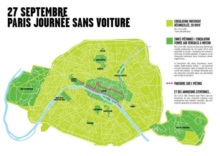 Carte de la "journée sans voiture" à Paris