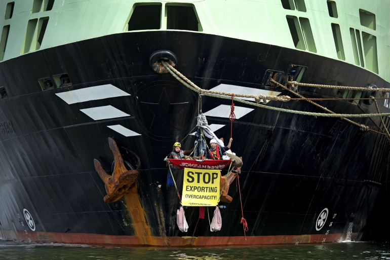 Des militants Greenpeace bloquant le Margiris en Australie en 2012.