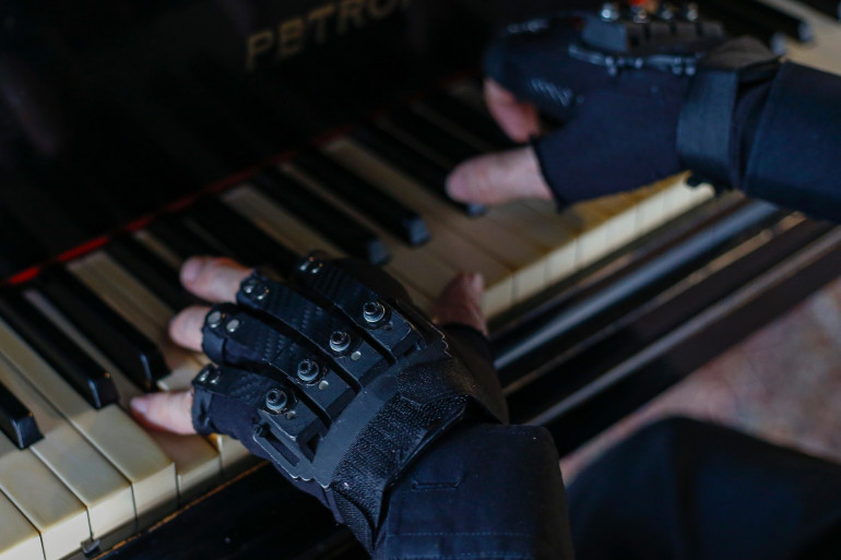 Depuis quelques semaines, João Carlos Martins est de retour. Sans ces gants, ce pianiste ne peut pas bouger ses mains. Le principe est assez simple. Après chaque note jouée, les doigts du pianiste sont poussés vers le haut. La mise au point de ces gants a demandé des heures et des heures de travail mais, finalement, le coût de fabrication ne dépasserait pas les 100 euros.