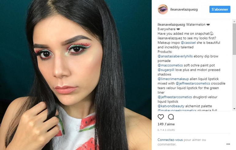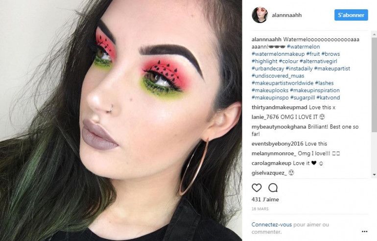 Maquillage pastèque plus discret et subtile, seulement en fard à paupière.