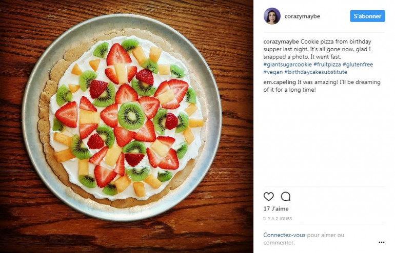 Pizza aux fruits toute simple avec une base cookie pour les gourmands.