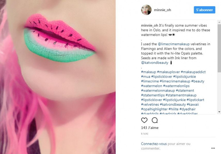Maquillage pastèque très frais sur les lèvres uniquement.