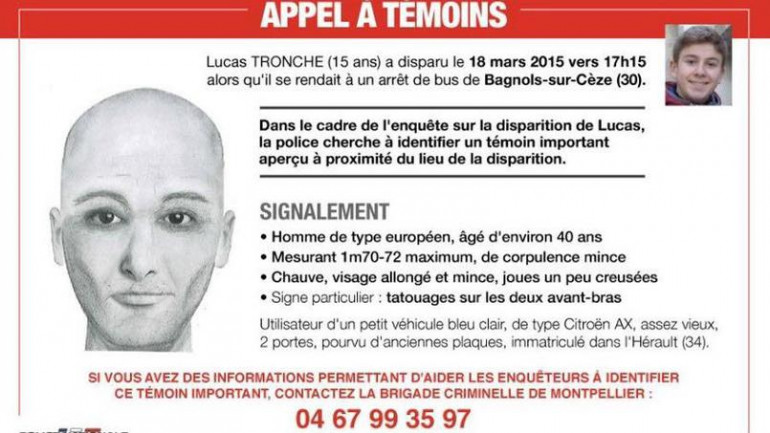 Si vous avez une information particulière à transmettre concernant la disparition de Lucas vous pouvez contacter la mairie de Bagnols-sur-Cèze (04 66 50 50 50) ou le 06 48 36 05 01. Vous pouvez également vous adresser à l'association Retrouvons Lucas et vous rendre sur les pages Je Cherche Lucas et SOS Lucas Tronche.