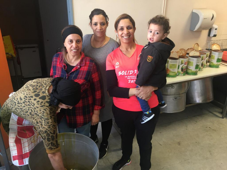 Des mamans au grand cœur ont créé l'association Art qu'en ciel. Tous les lundis elles se retrouvent dans une belle ambiance pour préparer un repas qui sera distribué le soir même aux plus démunis lors d'une maraude. Dans les cuisines du centre social, très actif dans la cité, il y a Djamila, la présidente de l'association. Elle a 37 ans, elle est maman de 4 enfants. Tee-shirt rose fluo et leggings gris clair, elle commence par les tâches ingrates : laver les casseroles et éplucher les oignons...