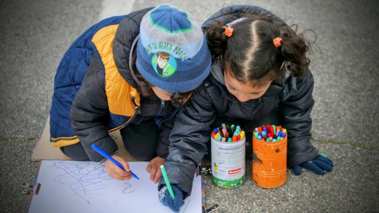 Les enfants font parler leur côté artistique dans le quartier des Rosiers, dans le 14ème arrondissement de Marseille
