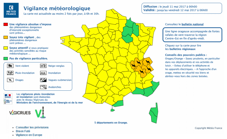 Météo France place 5 départements en vigilance orange jeudi 11 mars
