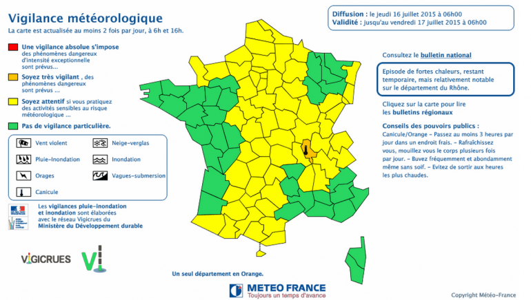 Météo : 1 départements placé en vigilance orange "canicule" jeudi 16 juillet