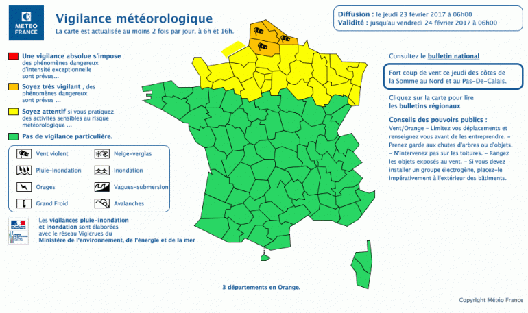 Alerte vent violent le 23 février 2017