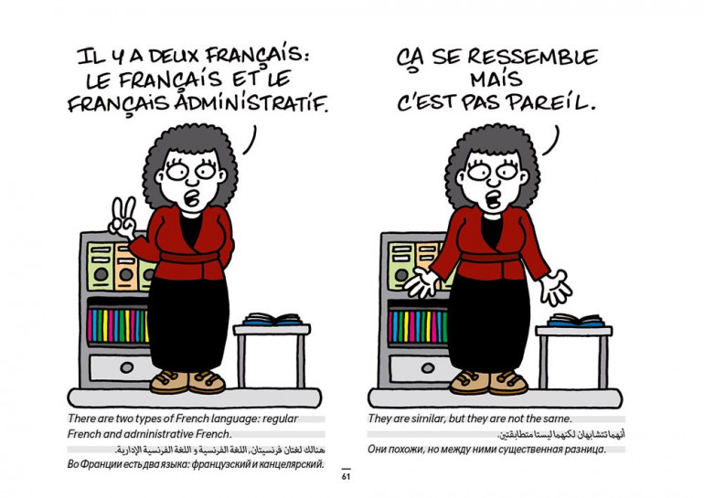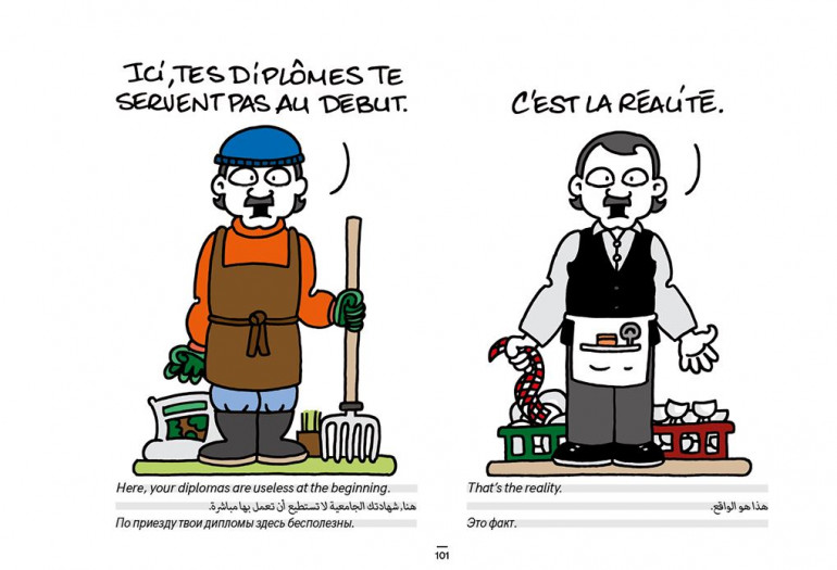 Il se présente sous forme de bande-dessinée aux histoires très courtes qui illustrent les difficultés du quotidien rencontrées par les réfugiés. Concrètement le guide ne donne pas tellement de clefs précises pour l'administration, mais s'inspire du vécu de migrants - qui ont aidé à son élaboration - pour faciliter la transition entre le pays d'origine et les mœurs en France.