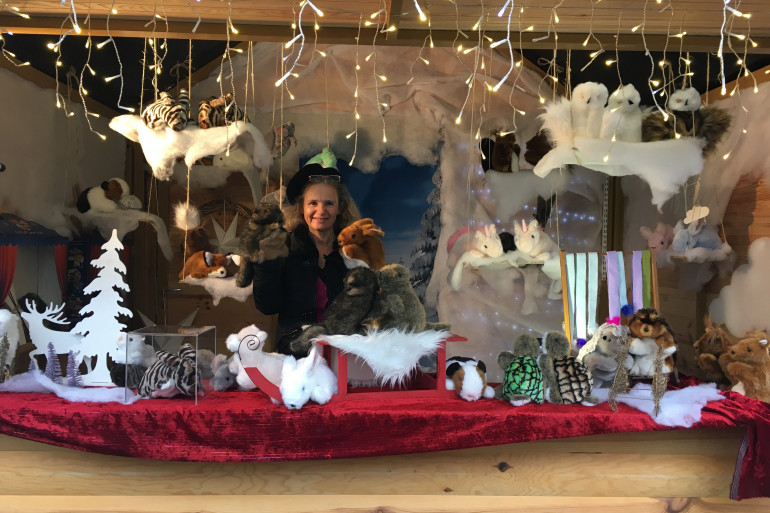 Nathalie Roulois connaît son métier sur le bout des doigts. Depuis plus de trente ans, elle fabrique des marionnettes dans son entreprise Peluches animées, à Ris-Orangis, dans l'Essonne. Lapins, chats, marmottes, renards...Ses peluches sont en acrylique. Elles sont très douces, il y a même une fabrication spécialement conçue pour les bébés.Nathalie les vend ensuite sur les marchés. C'est là que tous ses animaux prennent vie. " Quand je mets la main dedans", s'exclame-t-elle, "et que je fais bouger la tête et les pattes, les enfants ont l'impression que c'est un vrai lapin que j'ai dans les mains".