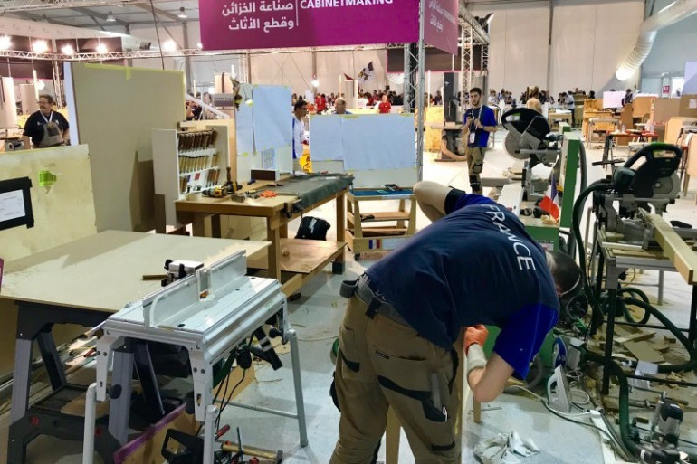 Imaginez des dizaine de bâtiments sur-climatisés, avec à l'intérieur 1.300 compétiteurs venus du monde entiers pour s'affronter pour des épreuves manuelles lors des Worldskills d'Abu Dhabi. L'équipe de France était composée de 38 jeunes, qui concouraient dans plusieurs métiers différents, de l'ébénisterie à la taille de pierre.