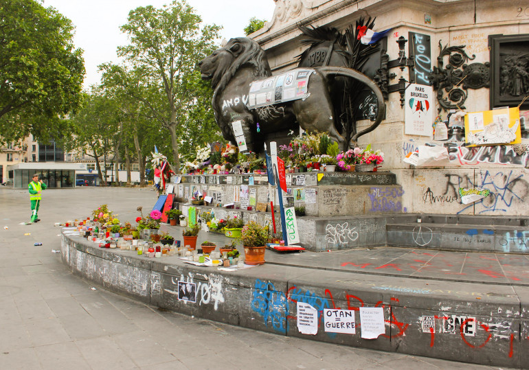 Aux origines de tout cela, la soirée du 7 janvier 2015, quand des milliers de personnes s'y sont rassemblées spontanément pour rendre hommage aux victimes des attentats visant Charlie Hebdo. Depuis ce soir-là, la fontaine de la statue est devenue le berceau des témoignages d'émotion et de respect envers les victimes du terrorisme.