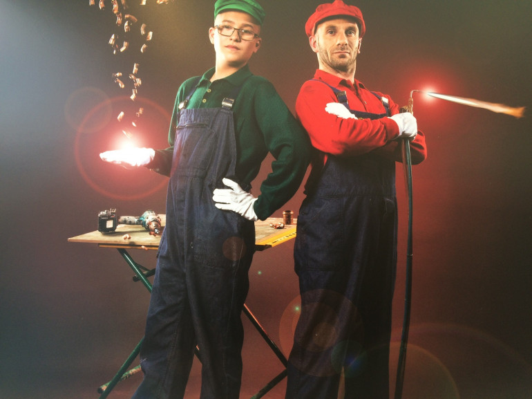 Pascal Romain et son apprenti posent pour un calendrier
