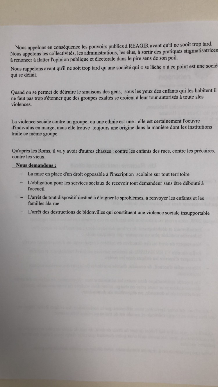 Communiqué de presse sur la situation des Roms en France