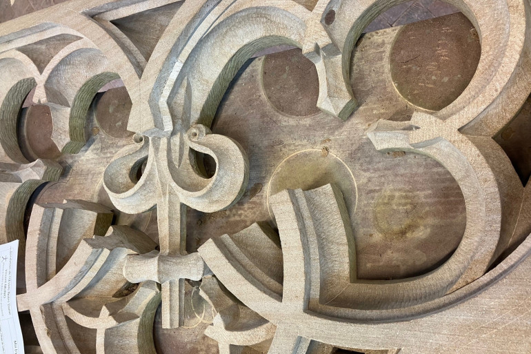 Tout autour de nous, des blocs de pierres et des statues, qui vont être installés sur le portail Saint-Laurent, en chantier en ce moment. "Je viens de terminer cet élément de balustrade, il fait environ 1 mètre sur 15 centimètres d'épaisseur. Il est finement ajouré. Mais pour réaliser ça, il faut au moins 10 ans de métier", explique-t-il.
