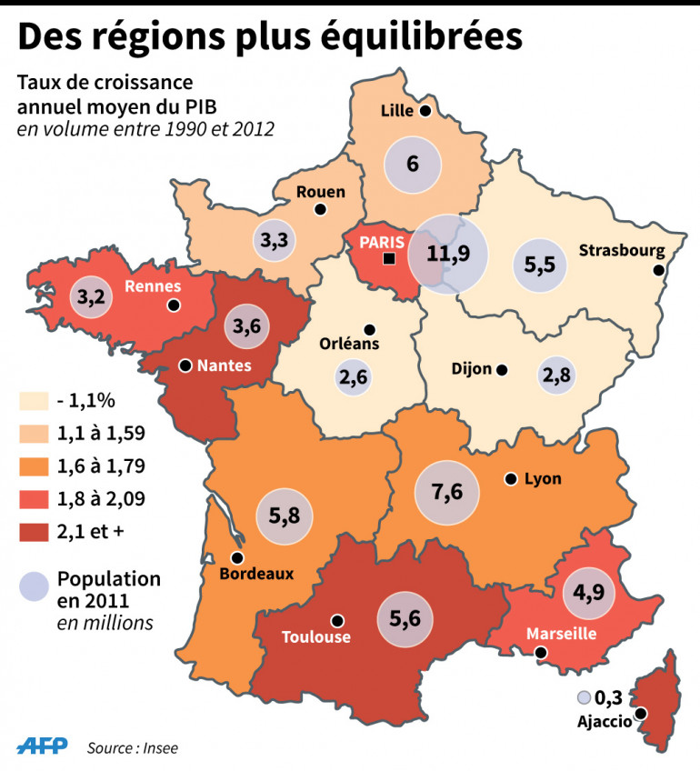 La nouvelle carte des régions va contribuer à réduire les inégalités démographiques et économiques, selon l'Insee.