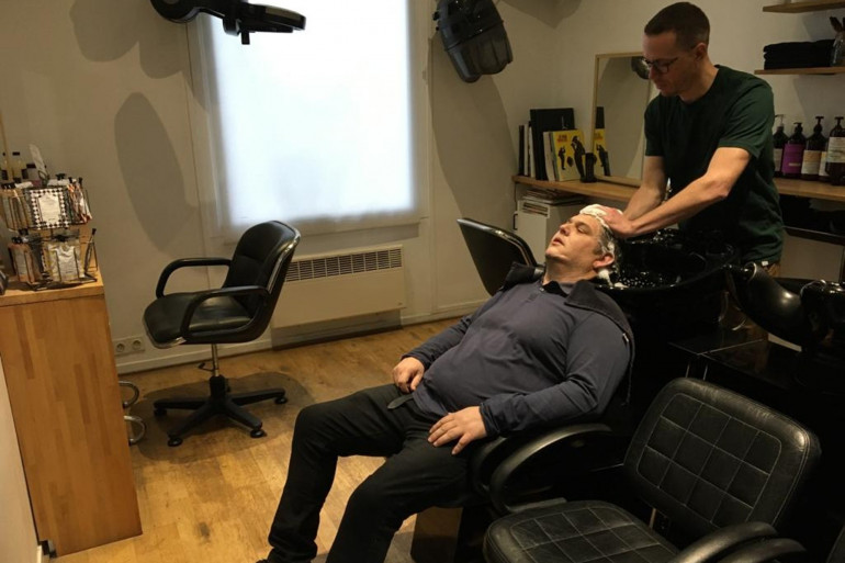 Benjamin chez Ronan artisan coiffeur pour une coupe suspendue.