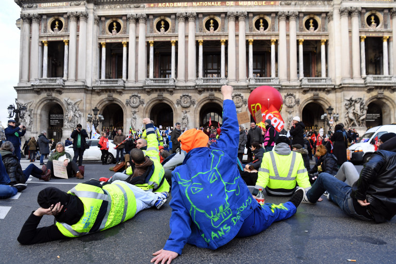 Manifestants devant l'Opéra Garnier le 5 février 2020 contre la réforme des retraites