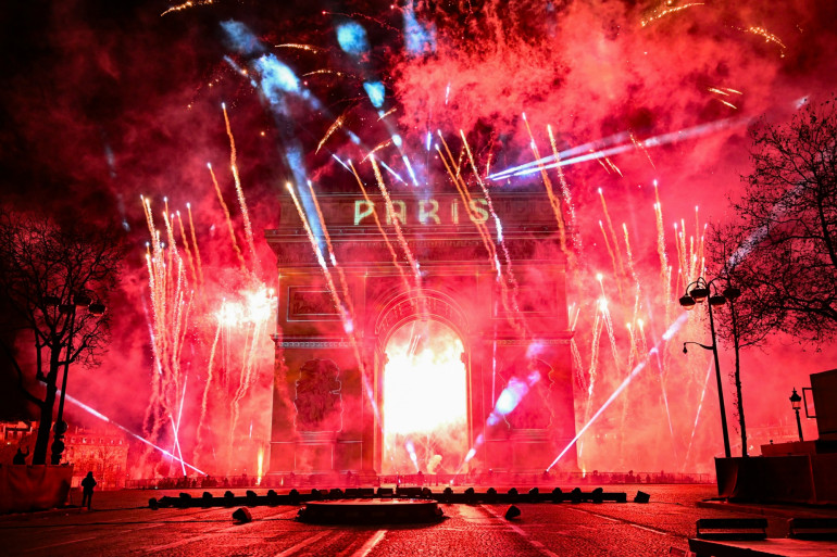Les images du feu d'artifice, tiré au sommet de l'Arc de Triomphe