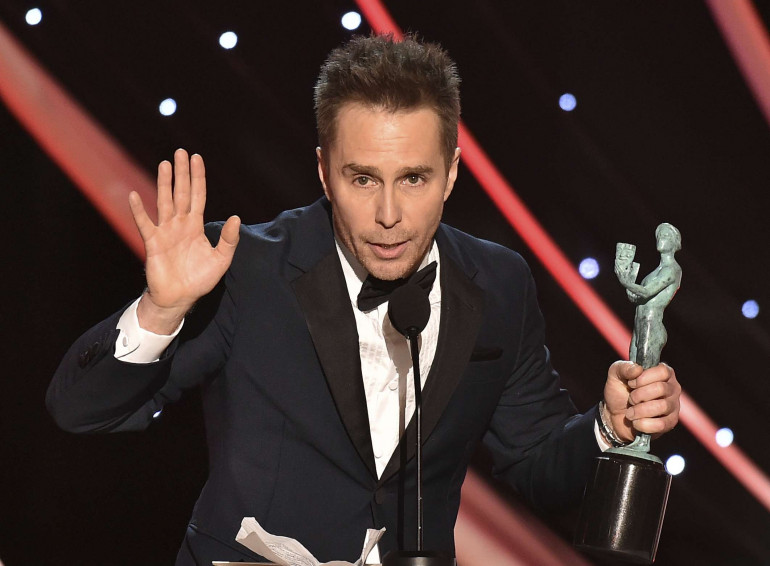 Sam Rockwell lors de son discours de remerciements aux SAG Awards, le 21 janvier 2018, à Los Angeles