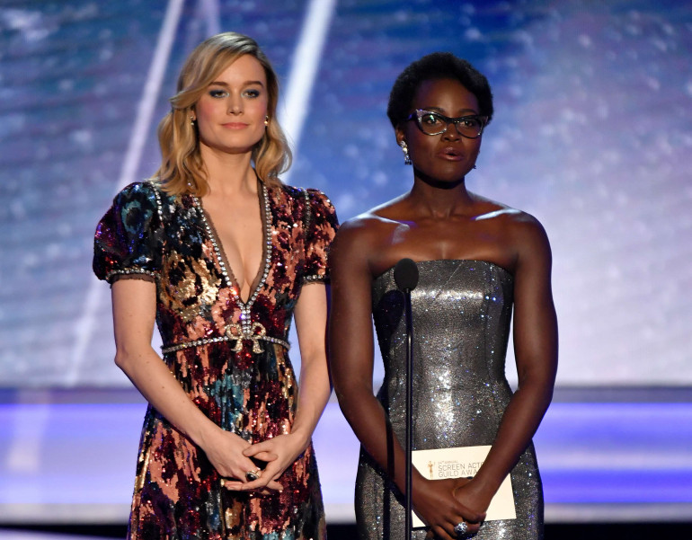 Brie Larson et Lupita Nyong'o présentent un prix lors des SAG Awards, le 21 janvier 2018 à Los Angeles