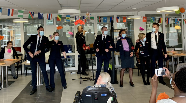 Ces bénévoles, ce sont 10 hôtesses de l’air et stewards de l’association Avion sans frontière. Ils viennent plusieurs fois par semaine mettre du baume au cœur des résidents.