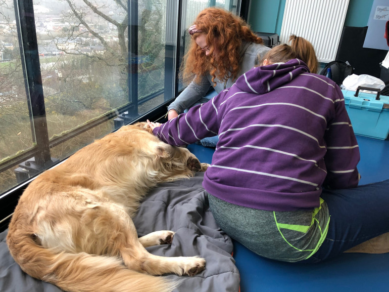 Avec les cochons d’Inde, les lapins ou encore la poule, les enfants caressent, brossent et donnent à manger aux animaux. "Les animaux cela nous détend", se réjouit l'un d'eux, et très vite on s'aperçoit du pouvoir des animaux sur les enfants. Pour Emmanuelle, la différence se voit entre les débuts des séances qui sont "agités" et leur déroulement qui sont "tout calmes". Lors de l'arrivée de Gabou, le golden retriever d'Emmanuelle, les enfants applaudissent et sont extasiés devant leur animal préféré.