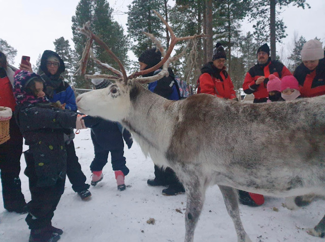 Les enfants avec le Père Noël à Ivalo (Laponie)