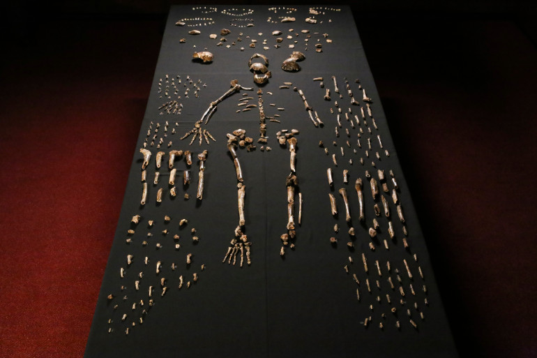 Des ossements appartenant à l'Homo Naledi montrés à la presse le 7 septembre à Johannesburg.