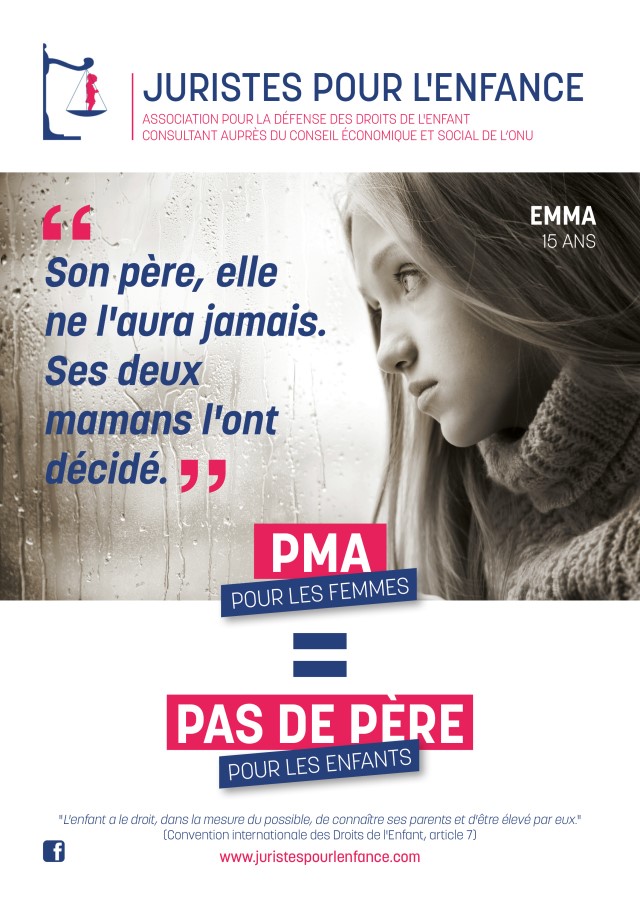 L'affiche utilisée par l'association anti-PMA Juristes pour l'enfance