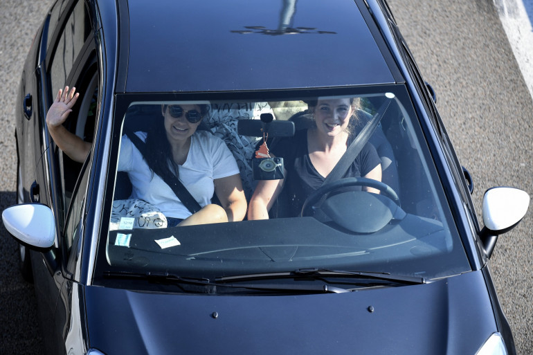 Deux jeunes automobilistes sur l'autoroute A7