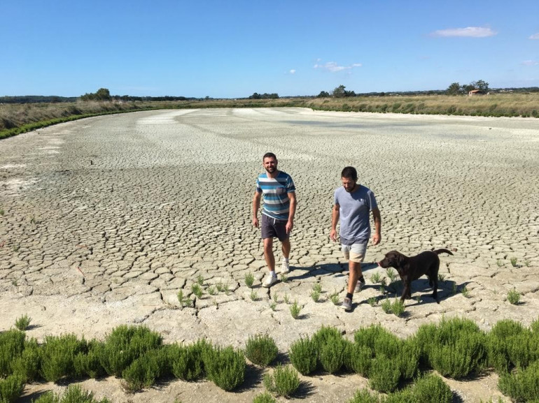Yohan Eveno et Julien Lardeux sur le petit Cormier, une ancienne saline asséchée depuis deux ans, qui sera leur prochain chantier de restauration, en 2021