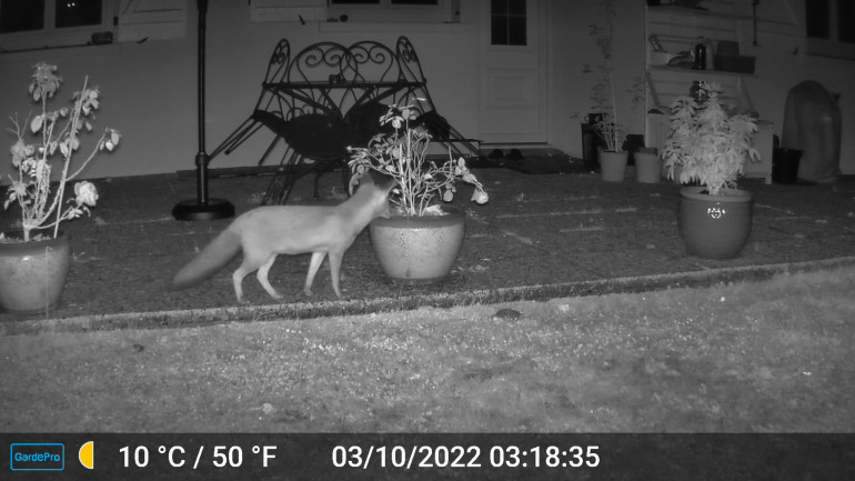 Le voleur de galets était un renard, pris en flagrant délit la nuit par la caméra de chasse de David.