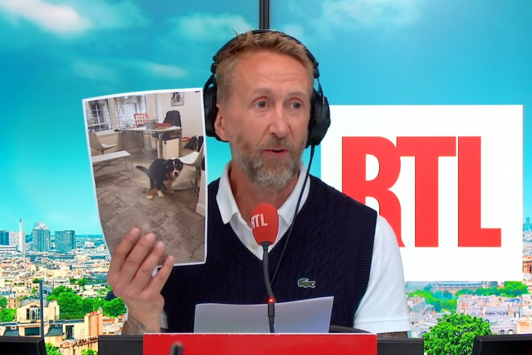 Dans sa chronique du lundi 16 septembre, Philippe Caverivière était en duo avec son chien Virgil. Le berger australien a marqué la radio et notamment le bureau de la direction où il a laissé sa trace, à sa manière. "Hier, il y a eu un attentat à RTL commis par un berger australien sous OQTF désormais, mon chien Virgil. Et regardez ce qu'il a fait dans le bureau de la direction", lance l'humoriste, une photo du drame à la main.