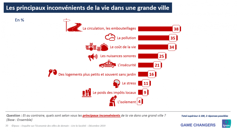 La circulation et les embouteillages sont les principaux inconvénients de la vie en grande ville pour 38% ds Français.