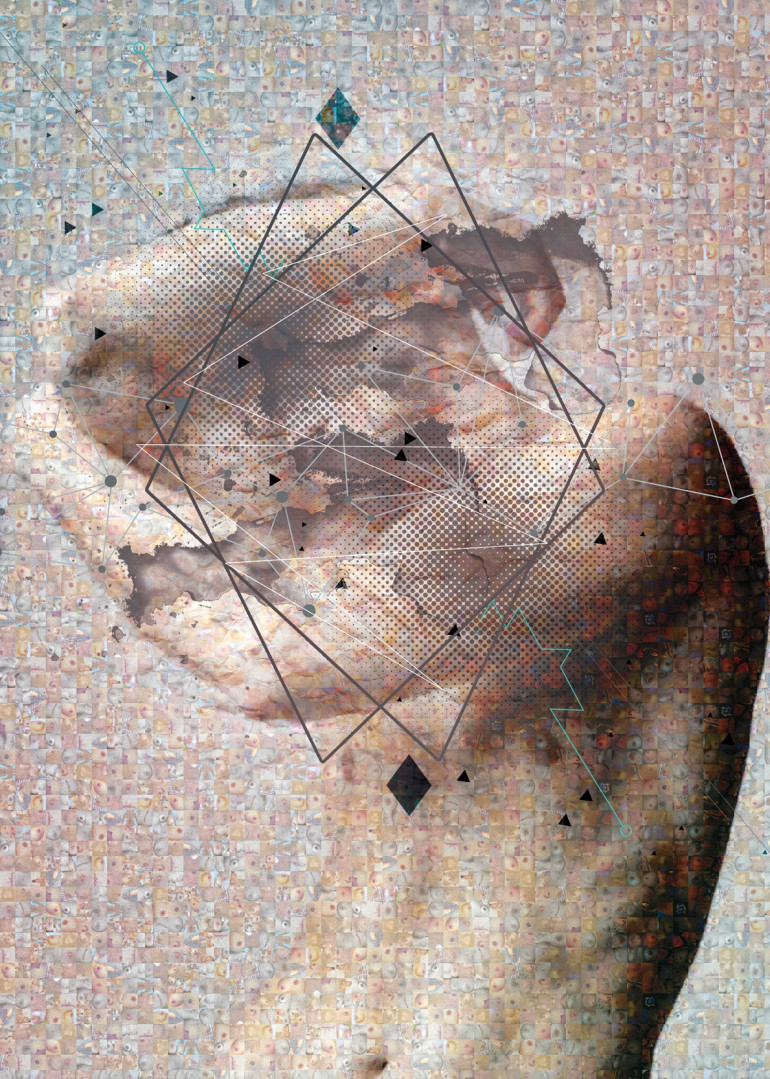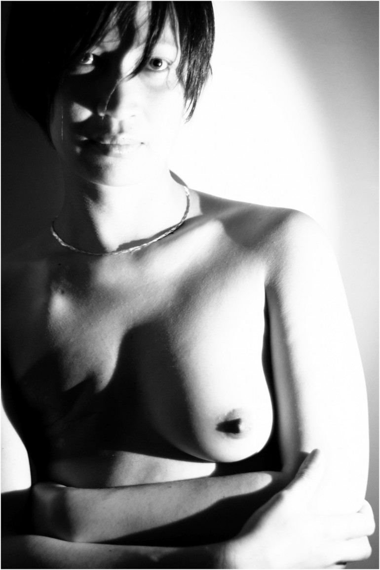 Plongée d’un sein au dessus des jambes, démultipliée dans un mouvement circulaire. Spécialement créée pour le concours, cette composition ressemble de loin, dans son abstraction, à un coquillage en gros plan. On s’approche et on découvre un sein, puis deux, d’autres encore, cachés et tournés dans la pudeur de l’infini qui s’ouvre dans l’entrebâillement noir de la ligne des deux jambes. Cette photo, c’est la douceur. L’effet rotatoire pour signifier le nécessaire repli sur soi, qui permet l’écoute de notre intimité et de l’univers tout entier pour mieux se reconstruire après la maladie. Courage, force, détermination, dynamisme, équilibre et patience… tel le coquillage, oreille océane du monde, qui se construit et reconstruit au rythme lent des marées.