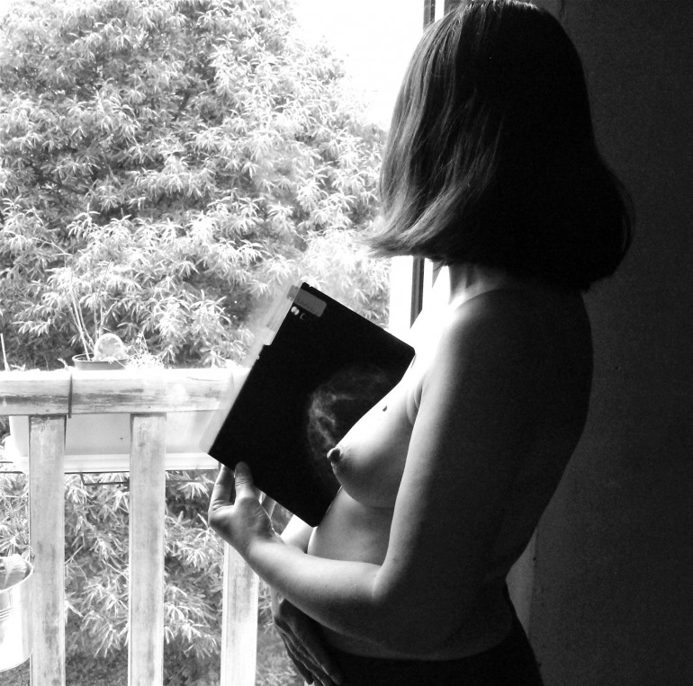Une femme face à sa réalité présente. Dans sa main, sa mammographie, comme un sein illusoire, une évidence qu’il faut intégrer. "Demain ne sera pas comme hier. Il sera nouveau et il dépendra de nous. Il est moins à découvrir qu’à inventer". Citation de Gaston Berger