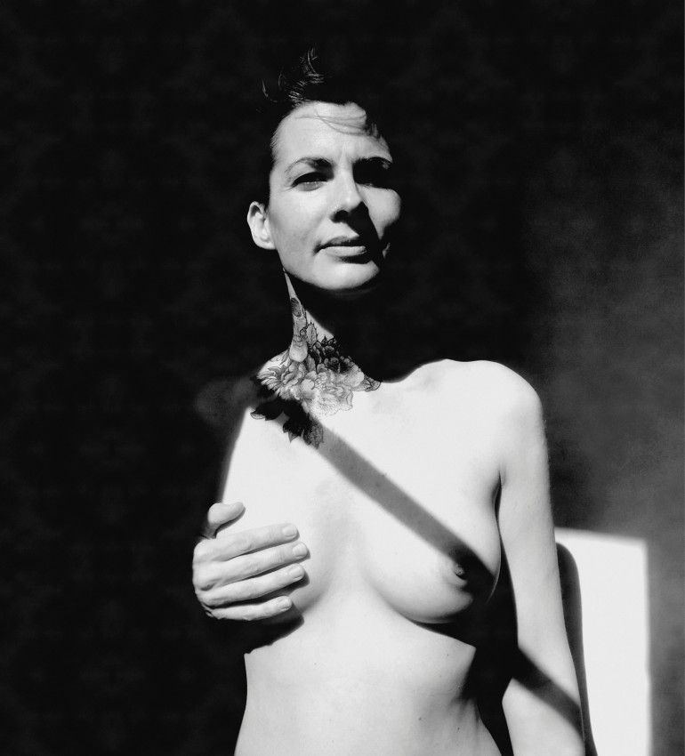 "La vie est une passion par laquelle la beauté passe à une perfection moindre." - Claire de Lamirande. À 35 ans, Peggy a appris qu’elle était atteinte d’un cancer du sein de stade 3. Après une mastectomie totale du sein droit en juin 2014, elle suit actuellement une chimiothérapie en se répétant chaque matin : "Parce que chaque jour compte". Avec cette photo, nous avons souhaité ensemble mettre en avant l’énergie qu’elle continue de déployer jour après jour pour continuer à se sentir femme malgré la maladie. Le noir et blanc s’est imposé, en référence aux portraits de stars des an¬nées 1950. Le "Pink" c’est ce rouge à lèvres qui fait encore tourner bien des têtes ! Peggy perdra certainement ses cheveux mais elle ne perdra jamais son audace, ni cette force qui l’anime chaque jour !