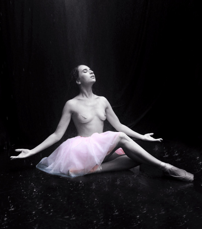 Après sa danse, la ballerine prend le temps de vivre cet instant. À ce moment, elle sait. Elle sait qu’elle a enfin vaincu la maladie. Dans la plus grande sérénité, elle laisse cheminer sur elle la pluie, source d’énergie et de vie. Elle peut sentir chacune des gouttes qui parcourent son corps, chacun de ses souffles, chacune des pulsations qui résonnent en elle. De nouveau, son corps lui appartient. L’énergie vitale la transcende.
