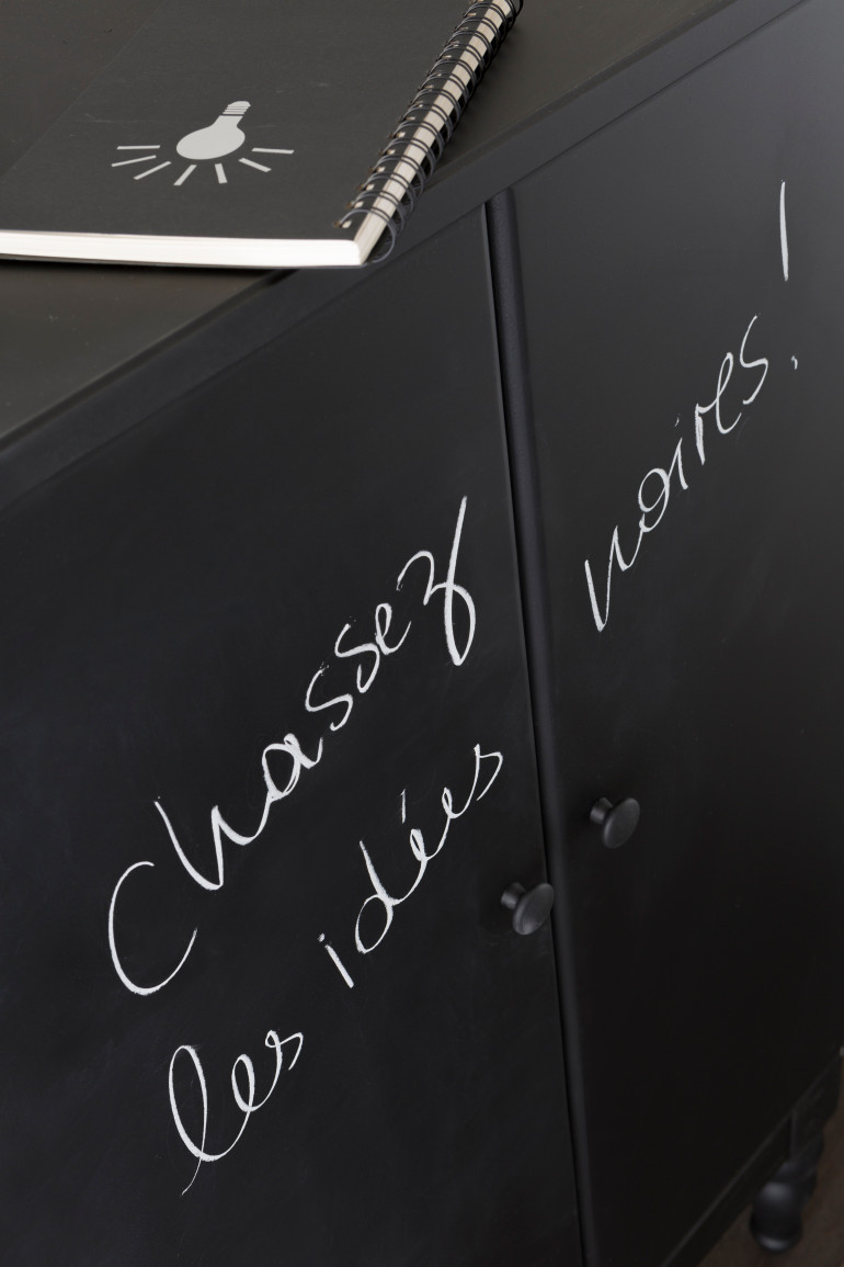 On termine avec la liste des courses. Une nouvelle rubrique avec les nouveautés qui sortent dans les magasins : Une peinture effet tableau chez Libéron. 17,90€ le pot (0,5L). Elle existe en gris, taupe, framboise et noir.