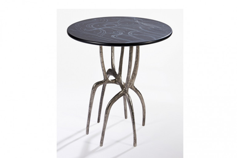 Au-delà du fonctionnel, le meuble devient une œuvre d’art. Preuve en est, les créations sont éditées en huit exemplaires et certaines pièces sont uniques telles que les guéridons Mangrove dont le plateau en ardoise est gravé à la main par l’artiste, à chaque fois d’un motif différent.