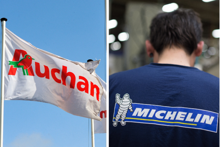 Les logos d'Auchan et Michelin.